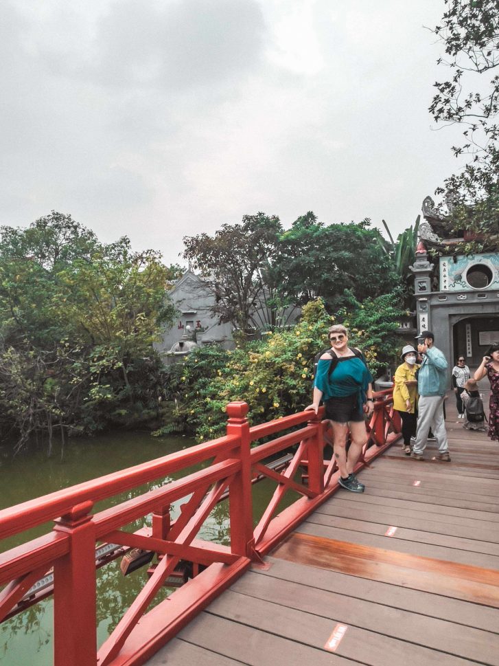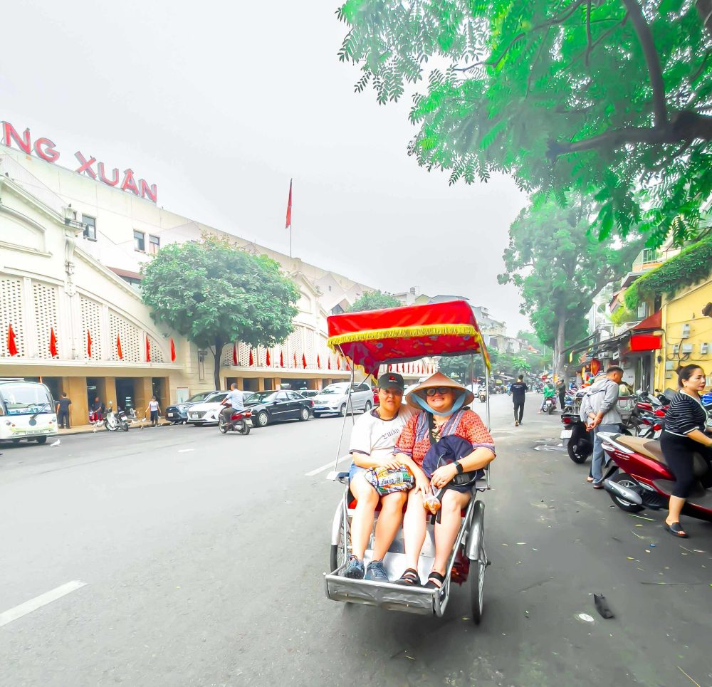 Riding a Cyclo or Rickshaw through the buzzing streets of Hanoi is like stepping into the heart of organized chaos—and loving every second of it. We gave him a $10 bill and he rode us around the thrilling town of the Old Quarter. As my wife and I perched in the seat, weaving between a symphony of honking scooters, cars, and street vendors balancing baskets on their shoulders, the thrill was unreal. It felt like the whole city was dancing around us, wild and alive. Our destination? The beautiful Ngoc Son Temple, perched on a tiny island in the middle of Hoan Kiem Lake. The moment we arrived, the noise melted into calm as we crossed the iconic red bridge leading to the temple. Surrounded by ancient trees and tranquil waters, the peaceful energy of this sacred spot was the perfect contrast to the adrenaline-filled ride getting there.