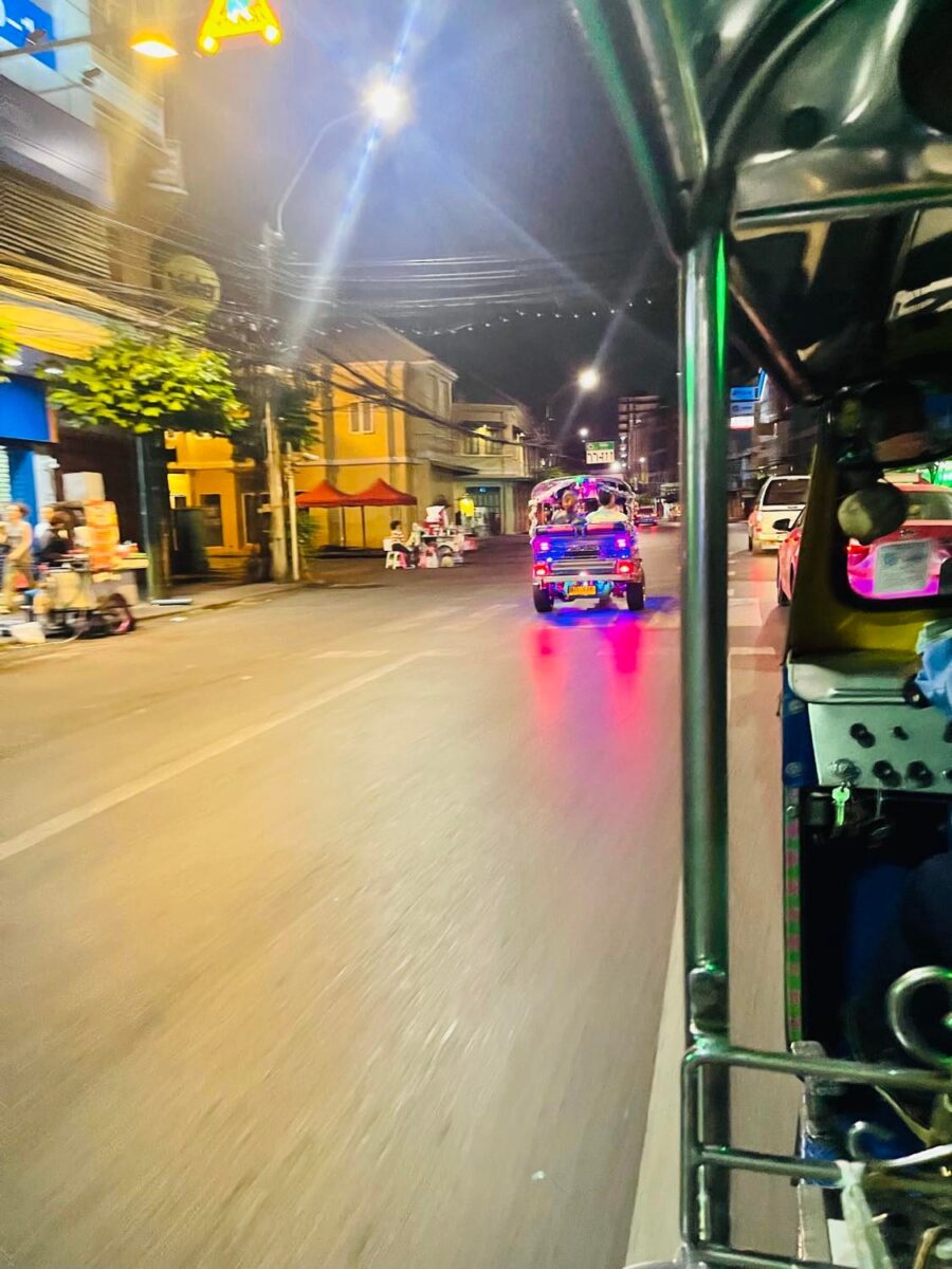 As adventurous foodies, we couldn’t wait to dive into the local cuisine. We had booked a midnight food tour via Viator that promised to take us on a culinary journey through the city’s best local dishes. Bustling by taxi, we arrived at meeting spot a little after 7 pm. Thankfully our tour guide waited for us. A large group of approx. 12 stood around as 6 Tuk Tuk’s pulled up , and we were off.